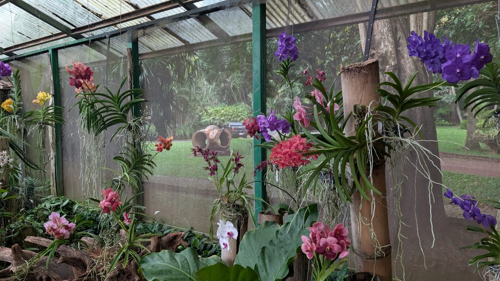 No se podría determinar que sea un jardín botánico ya que, entre otras cosas, no existen las especies identificadas o pocas de ellas. Pero si es cierto que tienen una gran variedad de orquídeas. Antes de establecerse el jardín a finales del siglo XX, la finca en la que se encuentra era un cafetal con árboles dispersos. Algunos ellos se pueden ver todavía hoy en día y con portes espectaculares.